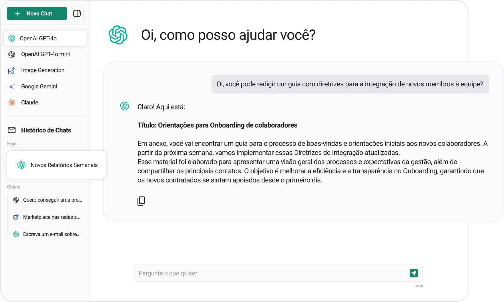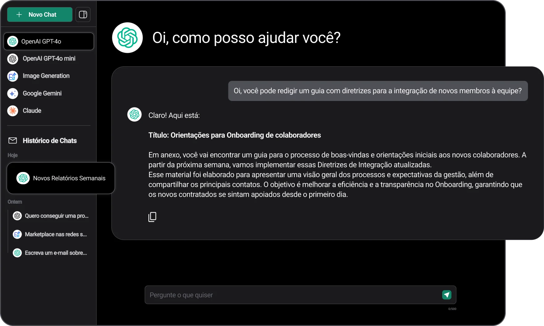 Os usuários podem ajustar o comportamento de resposta, formato de saída, estilo de linguagem e muito mais, permitindo que a plataforma se alinhe com necessidades operacionais específicas ou fluxos de trabalho criativos.