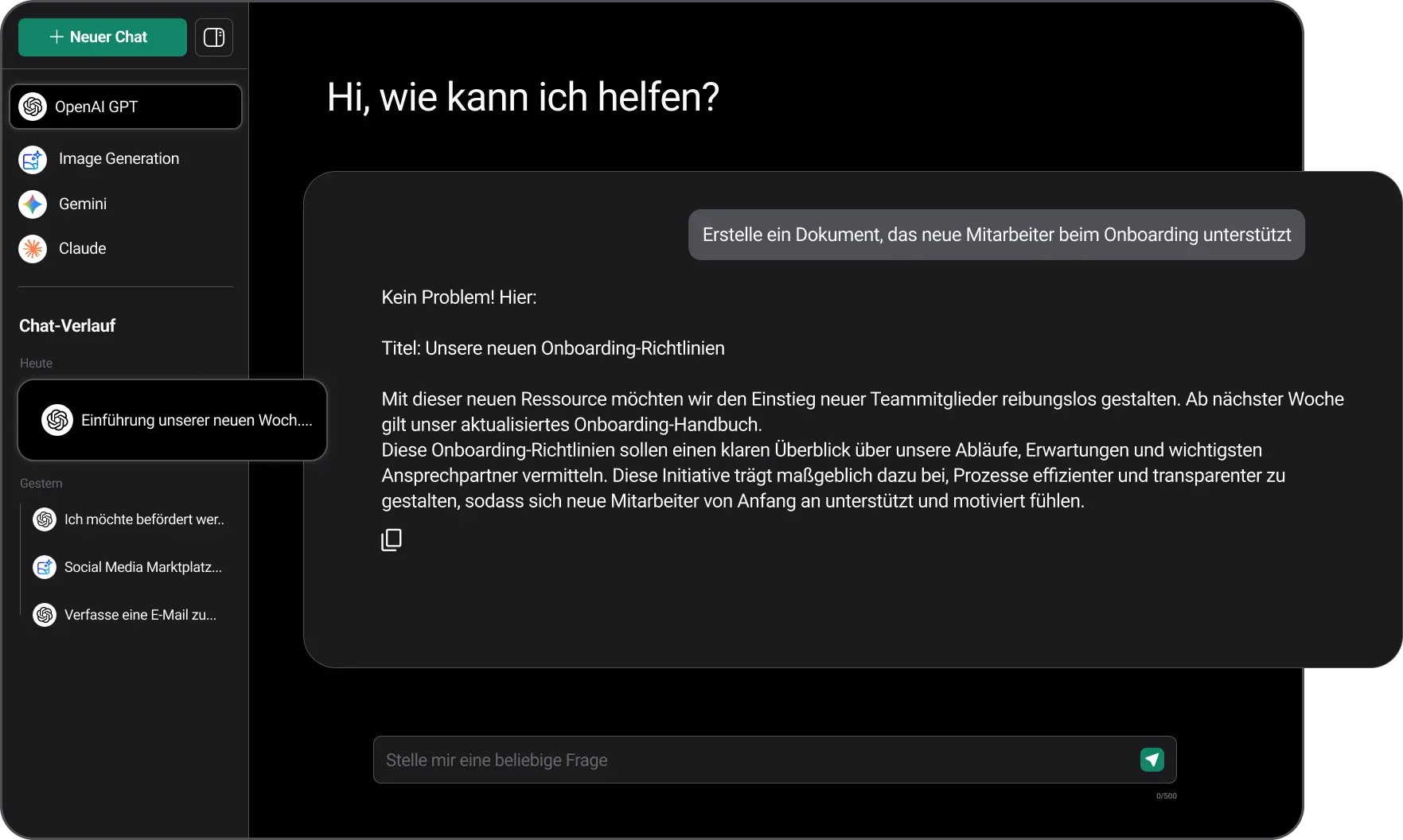 - Unbegrenzter Zugriff: Greifen Sie jederzeit und überall auf erstklassigen KI-Support zu – mit einer Vielzahl von Modellen direkt zur Hand.
