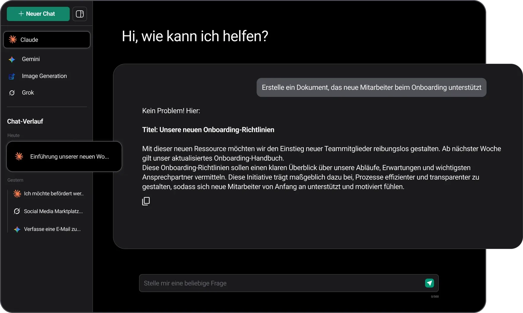 - Unbegrenzter Zugriff: Greifen Sie jederzeit und überall auf erstklassigen KI-Support zu – mit einer Vielzahl von Modellen direkt zur Hand.