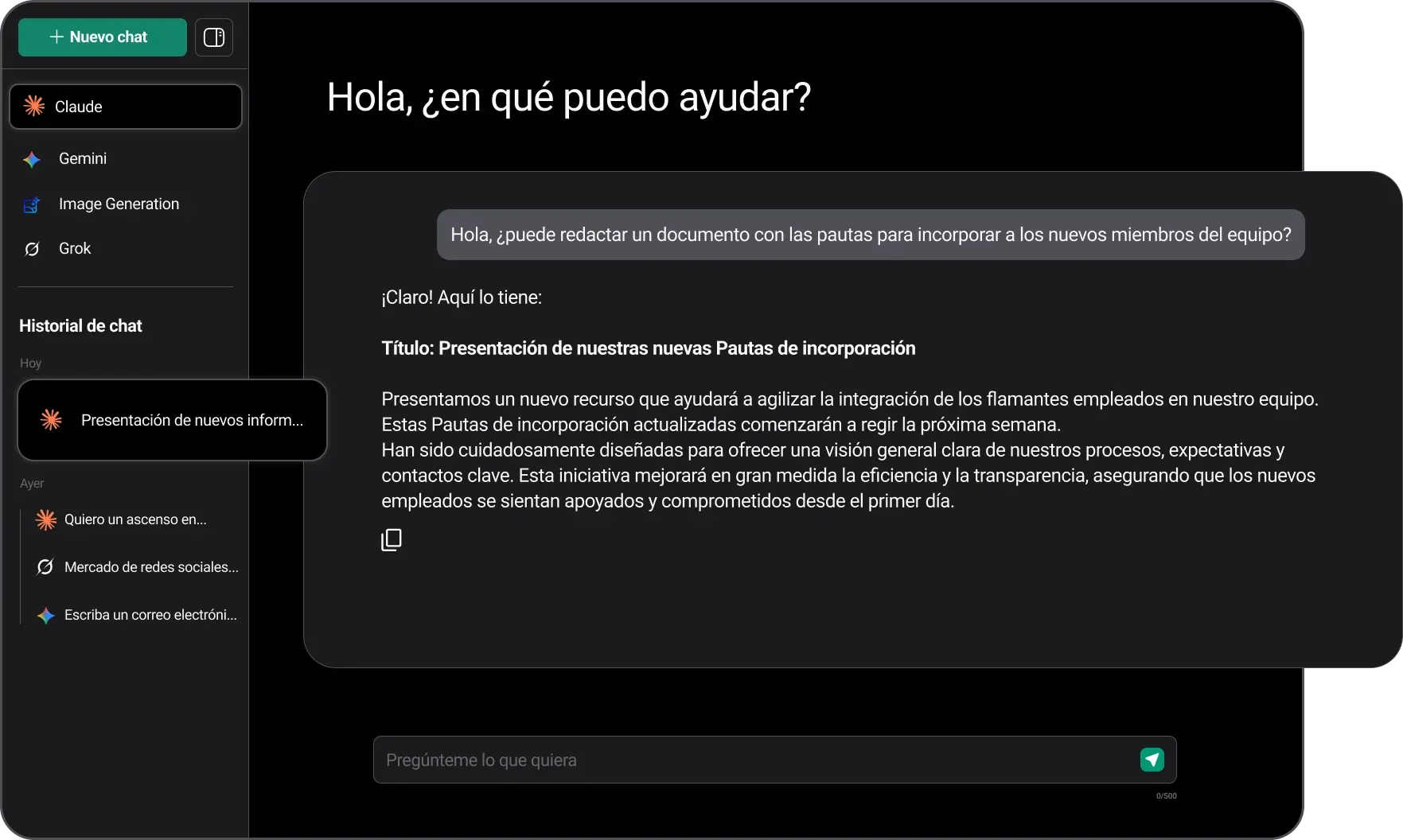 - Personalización: Personaliza tu experiencia de IA eligiendo entre varios modelos para adaptar a tus preferencias y requisitos.