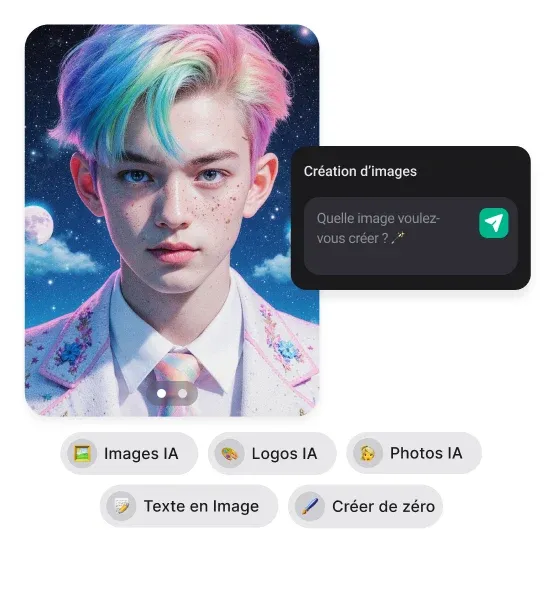 Votre créativité n'a pas de limites. Décrivez simplement votre idée et AI Chat la transforme en visuels époustouflants — aucune compétence en design requise. De l'imagination à l'image en quelques secondes, prête à inspirer, partager ou construire dessus. Juste vos mots. Pure création.