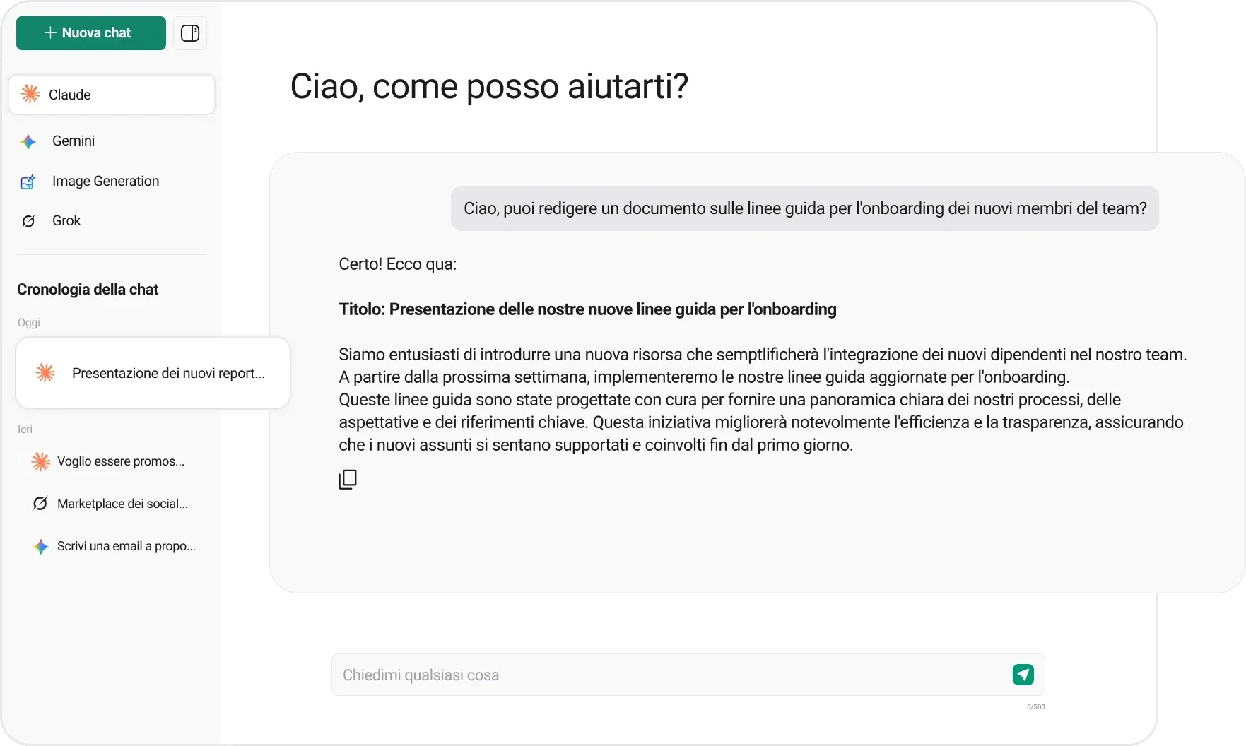 Chatta con diversi modelli di IA per trovare quello giusto per te.