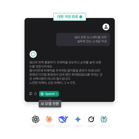 AI Chat 은 동적 대화를 위한 핵심 동반자입니다. 높은 수준의 언어 모델과 사용자 친화적인 인터페이스를 결합해 매끄럽고 개인화된 상호작용을 만들어냅니다. 복사-붙여넣기 없이 스마트하고 매력적인 대화를 즐기세요. 한 곳에서 더 빠르고 맞춤형 응답을 받으실 수 있습니다.